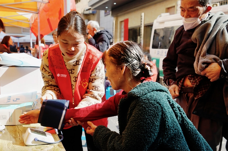 初冬的大别山南麓,暖阳和煦。在黄冈麻城市阎家河镇蔡家岗村,中国移动工作人员正细心地为独居老人戴上臂式血压计。片刻,测量结果通过智能血压计,瞬间上传至云端。“好了,曾伯伯,数据正常。您儿子在手机上也能看到啦。”工作人员的话,让老人脸上露出了安心的笑容。