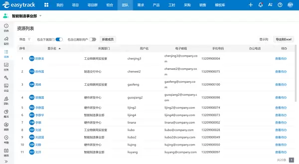 这一步不难,Excel表也能做,但后续需要核对资源负荷情况与资源动态调拨时,Excel表会频繁发生因信息滞后而导致的资源与时间冲突、资源调不动等情况。专业的项目管理系统在资源管理这一项上,能解决人工统计和调拨带来的错误和低效问题