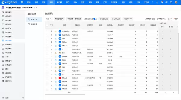 项目规划时,项目经理在易趋项目管理系统中创建资源计划,明确每个任务所需的资源类型、数量、能力要求及使用时间。系统会自动关联资源池,推荐匹配的资源列表。项目经理结合资源负荷情况提交资源申请,PMO审核通过后,资源即可正式分配到项目中。这个过程中,系统会自动校验资源是否冲突——如果申请的资源已被其他项目占用,会直接提示冲突信息,从源头避免“抢资源”问题。