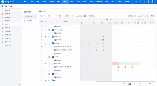 “一个工程师同时被3个项目组安排工作,一个设计师闲置半个月没人管”,这是资源管理的两大极端,也是成本浪费的重灾区。精准掌握资源负荷,就是要让“资源忙闲”可视化,实现“忙的不拖垮,闲的不浪费”。
