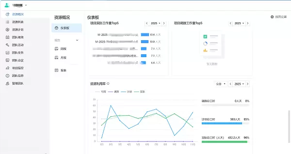 图6:资源管理仪表盘(资源利用率、工作量、绩效等数据可视化)