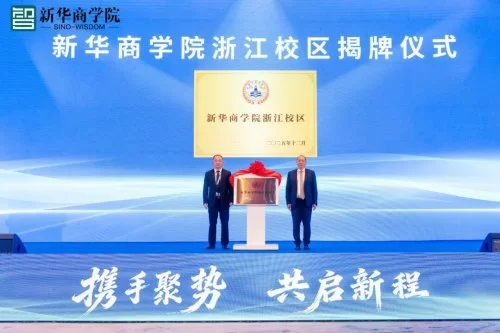 “新华商学院浙江校区”揭牌仪式:标志着新华商学院在长三角地区进一步扎根,将为本地企业家提供更贴近区域发展的课程与资源支持。