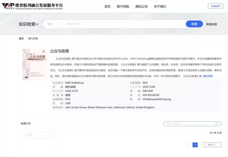 此次16本期刊成功入驻维普数据库,对学术成果的高效传播与价值认定具有关键意义。入驻后,作者发表的论文可通过维普网官网、维普期刊OA出版平台等多渠道便捷检索下载,检索页将清晰呈现期刊信息、文章摘要及作者详情,全方位满足学术成果传播与认定的双重需求。这一突破不仅将吸引更多优质学术稿源汇聚,进一步提升易达威期刊的出版质量与行业话语权,更将推动形成“优质稿源—高质量出版—广泛传播—品牌升级”的良性循环,为推动学术传播事业创新发展注入新活力。