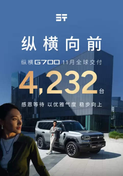 市场销量是产品力的最佳证言!数据显示,11月纵横G700全球交付4232台,累计订单量已突破2万台。其中,45%以上用户主动选择高配版本,30%用户额外增配越野穿越包,20%用户针对性选装外挂制氧机。这一亮眼成绩不仅印证市场对中国豪华越野的高度认可,更彰显了纵横强大的用户号召力,为中国汽车在高端赛道的进阶之路奠定了坚实基础。
