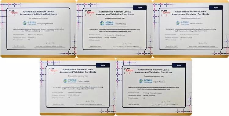 中国移动多项自智网络创新成果登顶TM Forum全球评测榜单