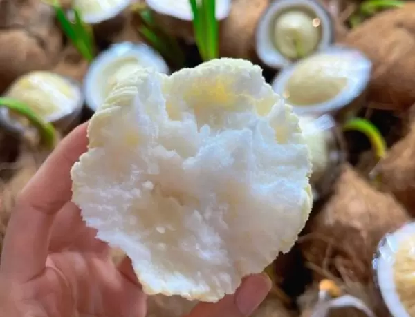 第一次见椰宝的人,大概率会以为它是 “坏掉的椰子”—— 其实它是老椰子在特定条件下形成的 “椰肉变异体”,藏着海南人都爱的独特风味: