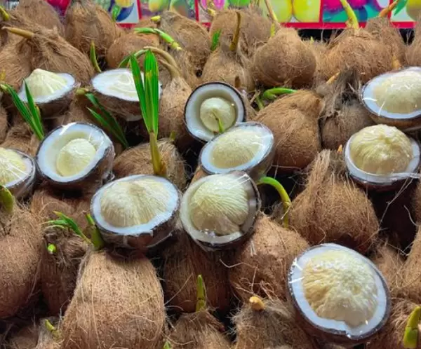 不是所有老椰子都有椰宝:只有老椰子在 “即将发芽” 但还没发芽的阶段,才会形成椰宝,如果椰子已经发芽,里面的椰宝就会变成 “椰苗”,不能吃了。
