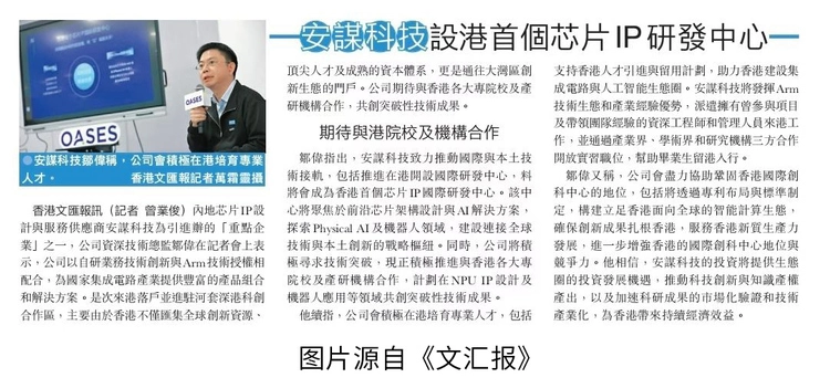 据《大公报》《文汇报》《香港经济日报》《信报》《南华早报》等多家香港主流媒体报道,香港政府自2022年底正式成立引进重点企业办公室,为香港注入经济新动能。安谋科技是引进办的“重点企业”之一,该公司在港建立的首家芯片IP研发中心将于2026年正式入驻。安谋科技资深技术总监邹伟表示,公司正推进在香港开设国际研发中心的方案,这将会成为香港首个芯片IP国际研发中心,未来三年人员预计超百人,聚焦于前沿芯片架构设计与AI解决方案,探索Physical AI及机器人领域,建设连接全球技术与本土创新的战略枢纽。同时,公司将积极寻求技术突破,现正积极推进与香港各大专院校及产研机构合作,计划在NPU IP设计及机器人应用等领域共创突破性技术成果。