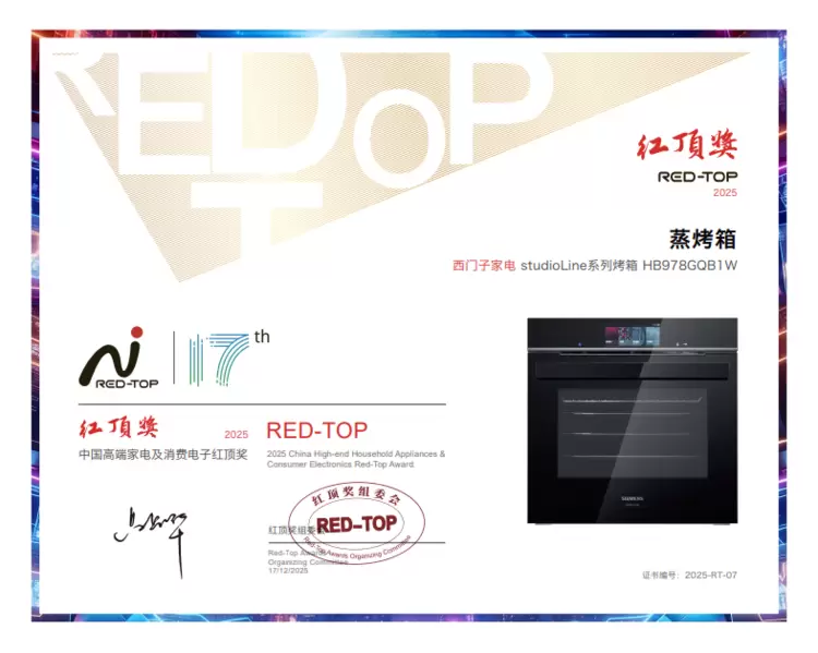 在中国高端家电领域具有权威影响力的“红顶奖”公布本年度获奖名单,西门子玄晶Pro智瞳AI烤箱凭借其兼具先锋设计理念与卓越工程品质的产品表现成功获奖。作为国内高端家电行业的重要风向标,红顶奖对设计、科技、品质及用户体验进行全方位评审,获奖作品需在行业创新性与消费价值上具备领先实力。此次获奖不仅是对西门子家电设计与研发能力的肯定,也再次证明品牌在高端厨电市场中的持续引领地位。