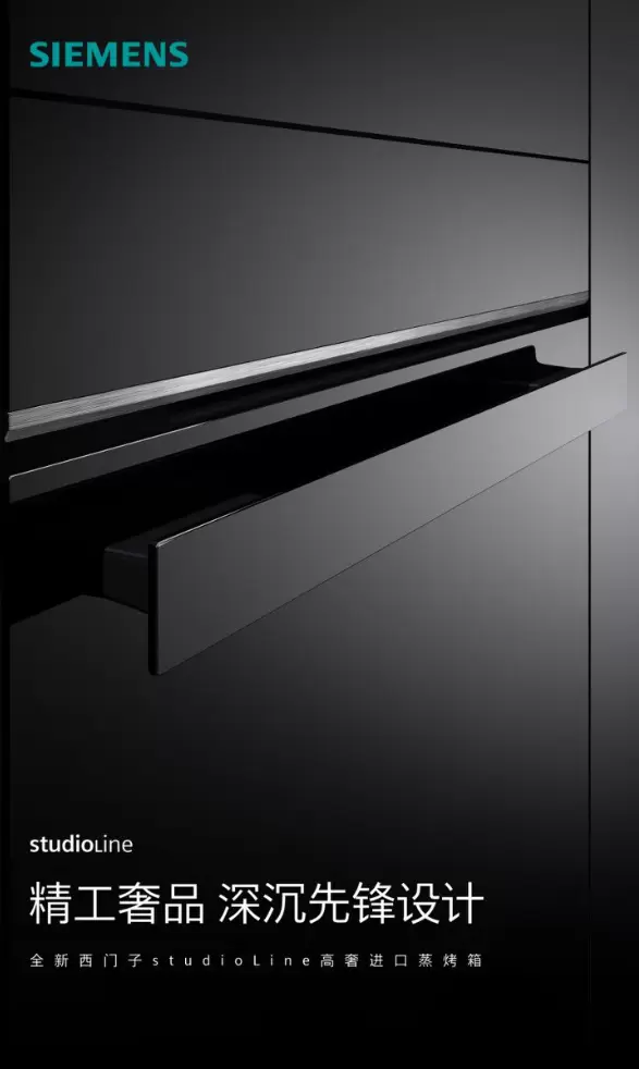 在空间呈现上,西门子玄晶Pro智瞳AI烤箱采用套系化和嵌入式设计,使产品在厨房布局中具备高度整体性,提升空间的秩序感与格调。宽幅镜面把手与黑色玻璃门体形成清晰轮廓,呈现理性而沉稳的平衡之美。studioLine专属字体、亮面镀铬LOGO、暗色碳钢镶边以及底部斜切结构等关键细节,在视觉与触觉层面共同构建该系列独特且经久的标识特征。