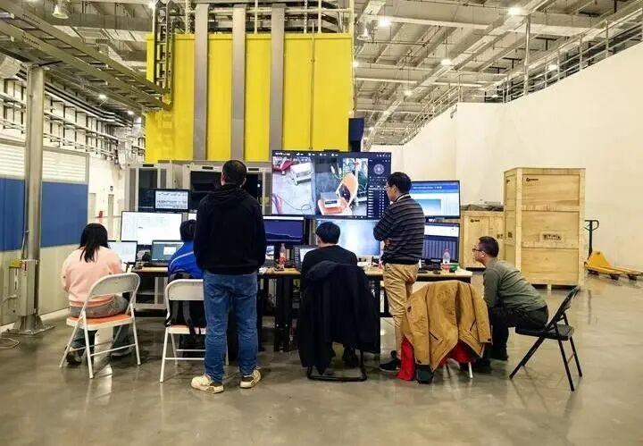 图 1 项目测试现场。中国工程物理研究院易荣清研究员、车兴森高级工程师,高能物理研究所郑雷研究员、刘树虎副研究员、唐坤高级工程师共同参与本次实测。