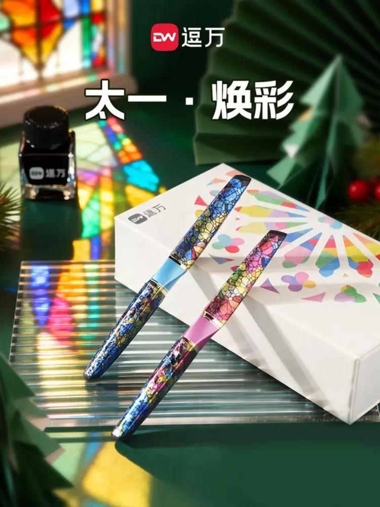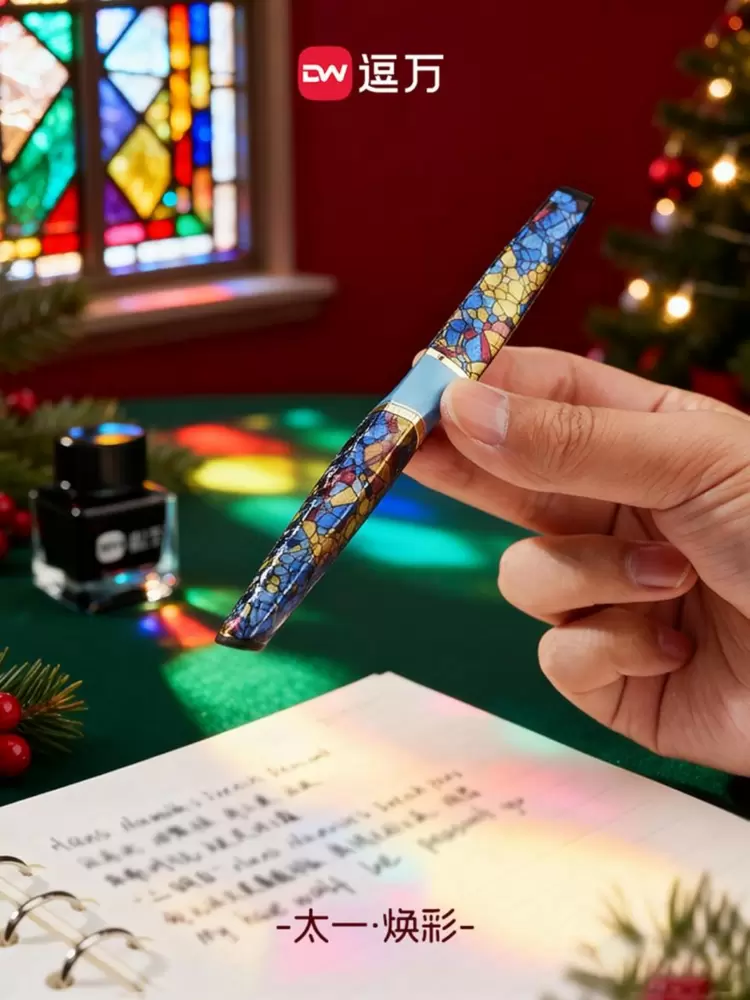 这款独特的钢笔不仅沿袭了逗万太一钢笔的拓扑变换结构笔身设计,还采用釉色层叠工艺搭配冰花特殊油漆喷涂,经极端温变工艺催化,形成独一无二、不可复刻的自然冰裂纹理,让每一支笔都拥有专属“身份印记”。笔身融入彩绘玻璃美学灵感,金属流光与通透釉色交织焕彩,在光影穿梭间尽显艺术质感,让每一次书写都成为与流动诗篇的浪漫邂逅。