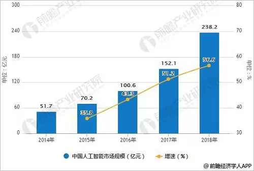 2014-2018年中国人工智能市场规模统计及增长情况预测