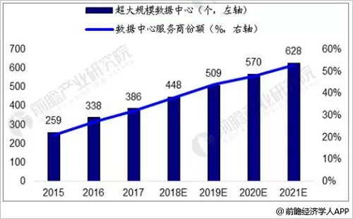 2015-2021年超大规模数据中心数量统计及增长情况预测