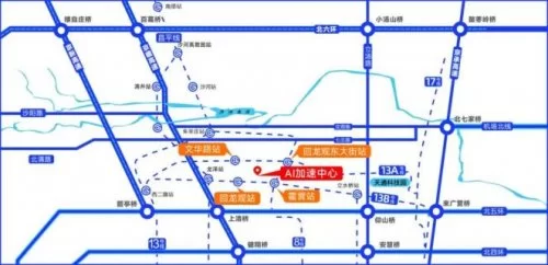 昌发展AI加速中心的区位交通优势尤为凸显。园区与18号线文华路站近在咫尺,真正实现了“地铁直达公司门口”。不仅如此,周边还被回龙观东大街站、回龙观站、霍营站等多个地铁站环绕,并辅以京藏高速、机场快速路以及首都首条自行车专用道,构成了一个立体高效、多元畅达的交通网络,让员工通勤与商务往来变得高效无忧。