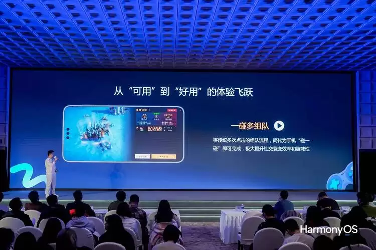 鸿蒙游戏坚持技术赋能艺术,依靠创新特性释放鸿蒙平台的巨大潜能。 星辉游戏手游全球运营负责人冯昱程现场分享了《三国群英传:策定九州》秒级启动玩法,通过接入鸿蒙内存镜像快片技术,游戏再次启动速度平均提升5倍,构建游戏体验的“高速公路”,降低用户流失。除此之外,游戏还接入一碰多组队,全面适配PC,实现从“可用”到“好用”的体验飞跃。