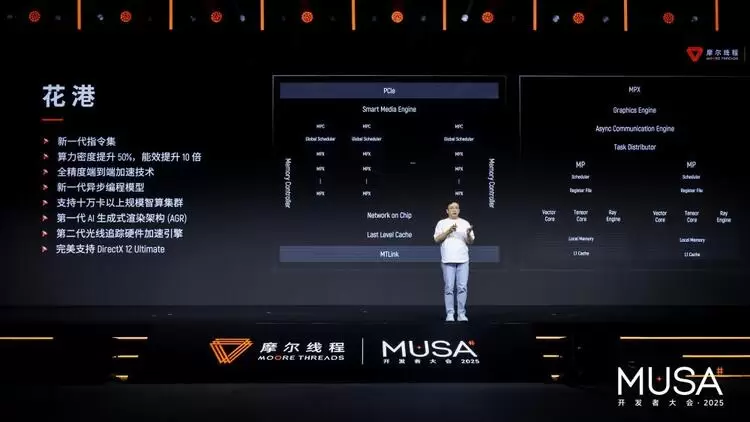 基于MUSA统一体系,摩尔线程揭晓新一代全功能GPU架构“花港”,该架构在计算密度、能效、精度支持、互联能力及图形技术等方面实现全面突破,其核心特性包括: