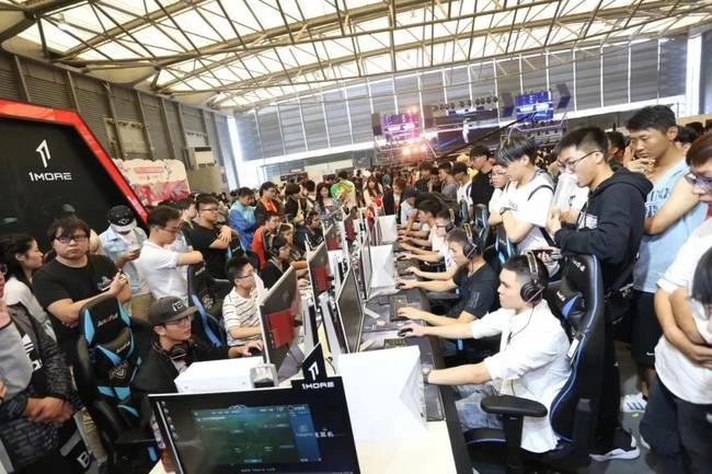 ↑1MORE展位人气最高的区域是这里:电竞体验区