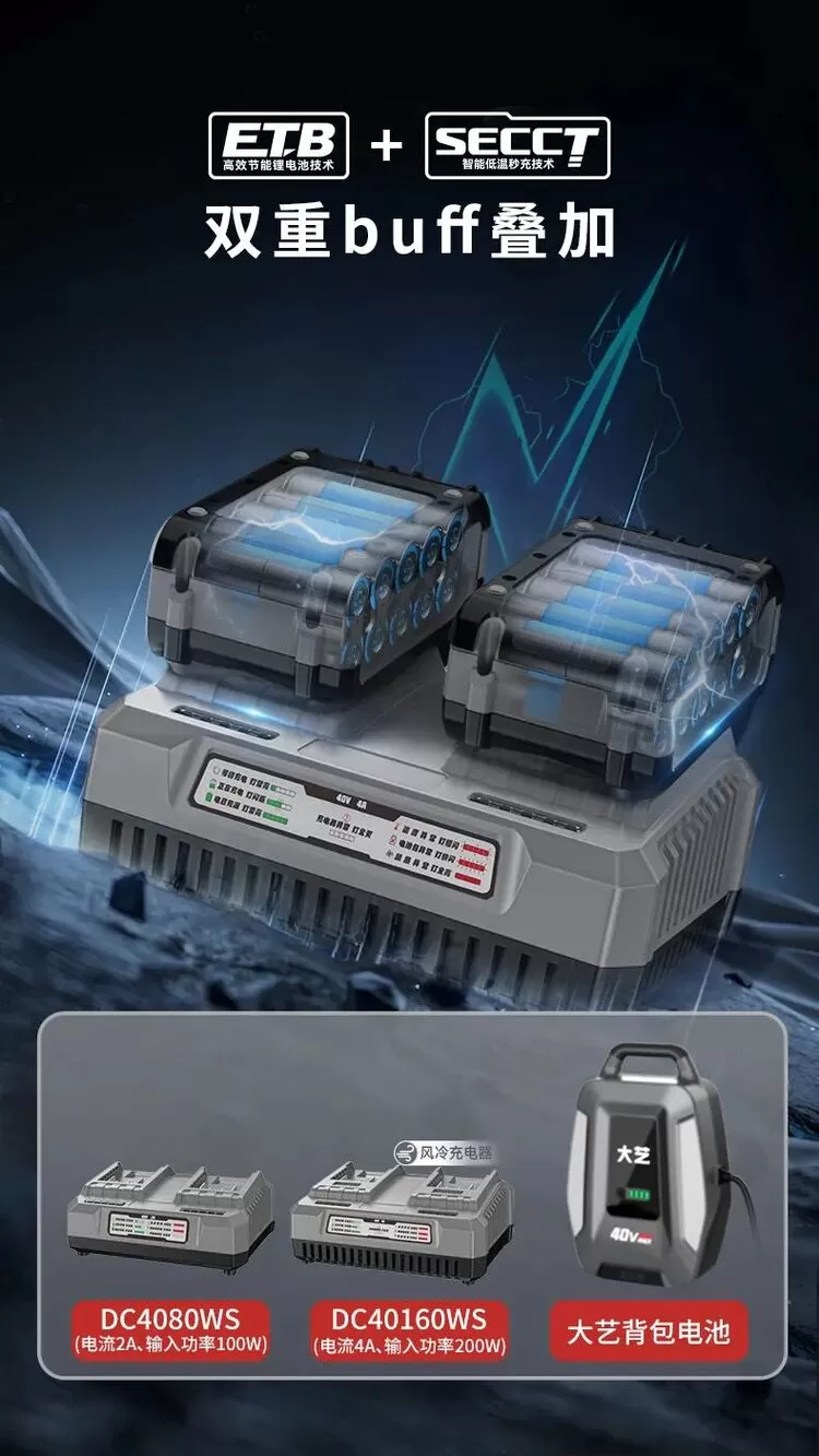 哈尔滨夜间温度较低,普通锂电池在低温下容量会大幅衰减,导致工具频繁断电,严重影响作业进度。大艺G40-02-405电链锯搭载ETB高效节能锂电池技术和SECCT智能低温秒充技术,双BUFF加持,同时产品具备的-20℃耐低温特性,在极寒环境下仍能稳定释放强劲动力。搭配大艺混沌神兽8.0Ah电池包,不仅续航持久,支持长时间连续创作,更能用清洁能源守护冰雪世界的洁白无瑕,助力绿色冰雪产业的可持续发展。
