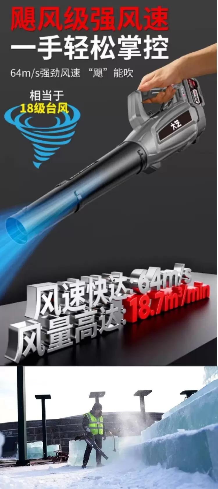 除了切割,冰雪雕琢过程中的碎冰清理、表面整理同样关键。大艺G40-660锂电无刷吹风机,凭借大功率无刷电机、涵道结合蜂窝网格设计,风量输出强劲。一键增压模式下,瞬时风速可达64m/s,堪比18级台风,能快速吹除冰屑积雪,让细节呈现更清晰。多种规格出风筒、便携背带、舒适包胶手柄等人性化设计,更让长时间户外作业轻松省力,成为冰雪工匠的高效清雪伙伴。