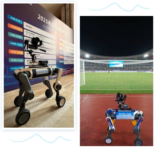 通过当虹科技BlackEye Vision机器人远程操控系统,操作人员无需进入赛场,即可远程控制机器狗的运动路径与镜头角度,在不干扰比赛的前提下,捕捉到更贴近赛场、更具临场冲击力的画面。