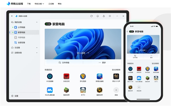 网易UU远程虽出自互联网大厂,但在远程控制领域属于较晚进入者,主打垂直的游戏串流市场。软件支持多设备4K@144Hz远程游戏,兼容Windows、iOS、Android、macOS(被控端内测中)、TV(测试中)等系统。