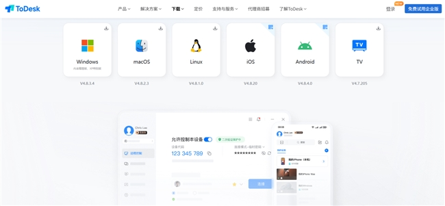 ToDesk在疫情期间凭借免费策略快速发展,支持Windows、macOS、Linux、iOS、Android、TV、及部分信创系统(对信创的支持不及向日葵全面)。