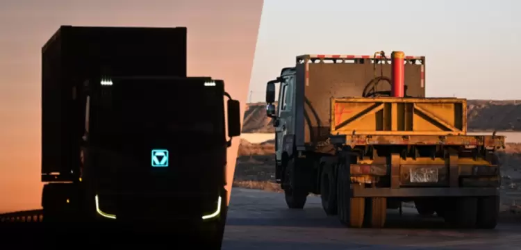 ▲和天下智运车队的换电重卡采用甩箱形式,煤不落地,损耗更小,全流程高效更清洁。