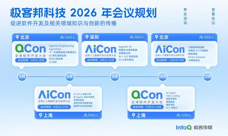 伴随 2025 AICon 北京站圆满收官,我们将把这份技术交流与思考的热度延续到 2026 年。期待与更多开发者再相聚,继续共同探索智能时代的下一程。