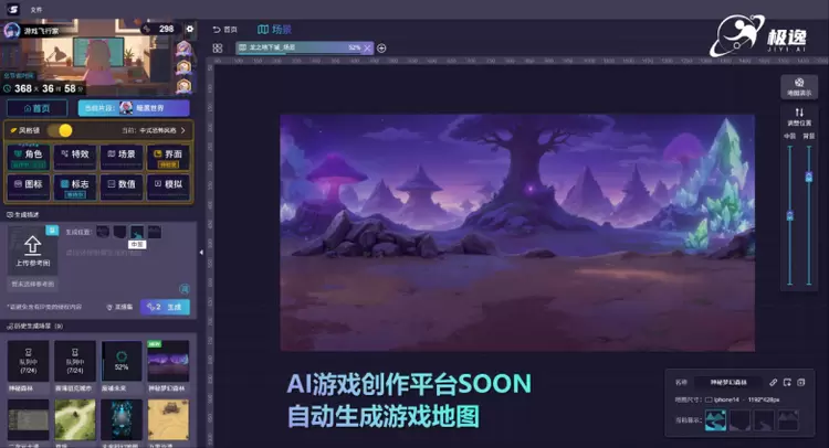 作为上述理念的核心落地载体,极逸人工智能自主研发的 AI 游戏创作平台 SOON,正在将“AI 生成游戏”从概念探索推进至工业化实践阶段。AI 游戏创作平台 SOON以游戏行业专精模型为底座,打通策划、数值、美术、程序等关键环节,支持开发者通过自然语言快速生成完整可玩的游戏原型,并在此基础上持续迭代与验证玩法可行性。相较于传统以资产生成为主的AI工具,AI 游戏创作平台 SOON更强调对游戏逻辑与玩法结构的理解,致力于降低游戏开发门槛、缩短试错周期,让创意能够以更低成本、更高效率转化为可验证、可商业化的游戏产品。