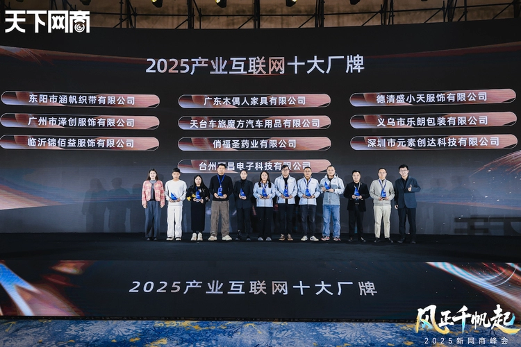 此外,峰会现场还颁发了“2025产业互联网十大厂牌”奖项。这10个厂牌是1688基于企业实力、企业优势、2025生意增长概况等维度遴选而来。