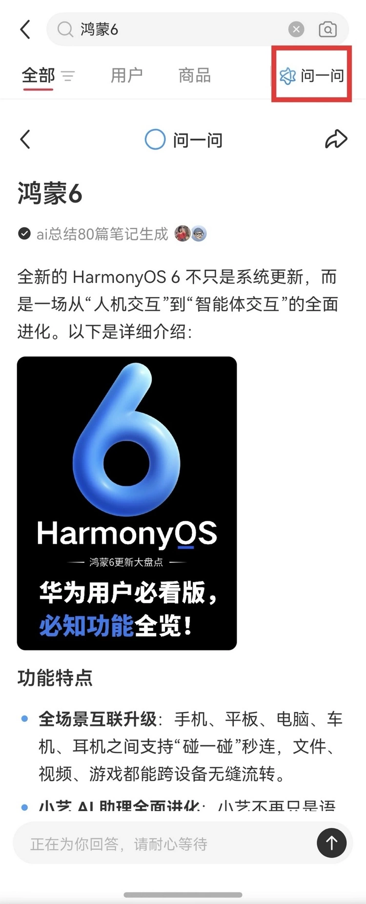 • 随时随地问一问:点击搜索结果页右上方的“问一问”,即可获取基于小红书笔记生成的AI回答内容,还能查看参考来源、继续追问更多,或者分享给小红书好友,快速帮你种草好物;