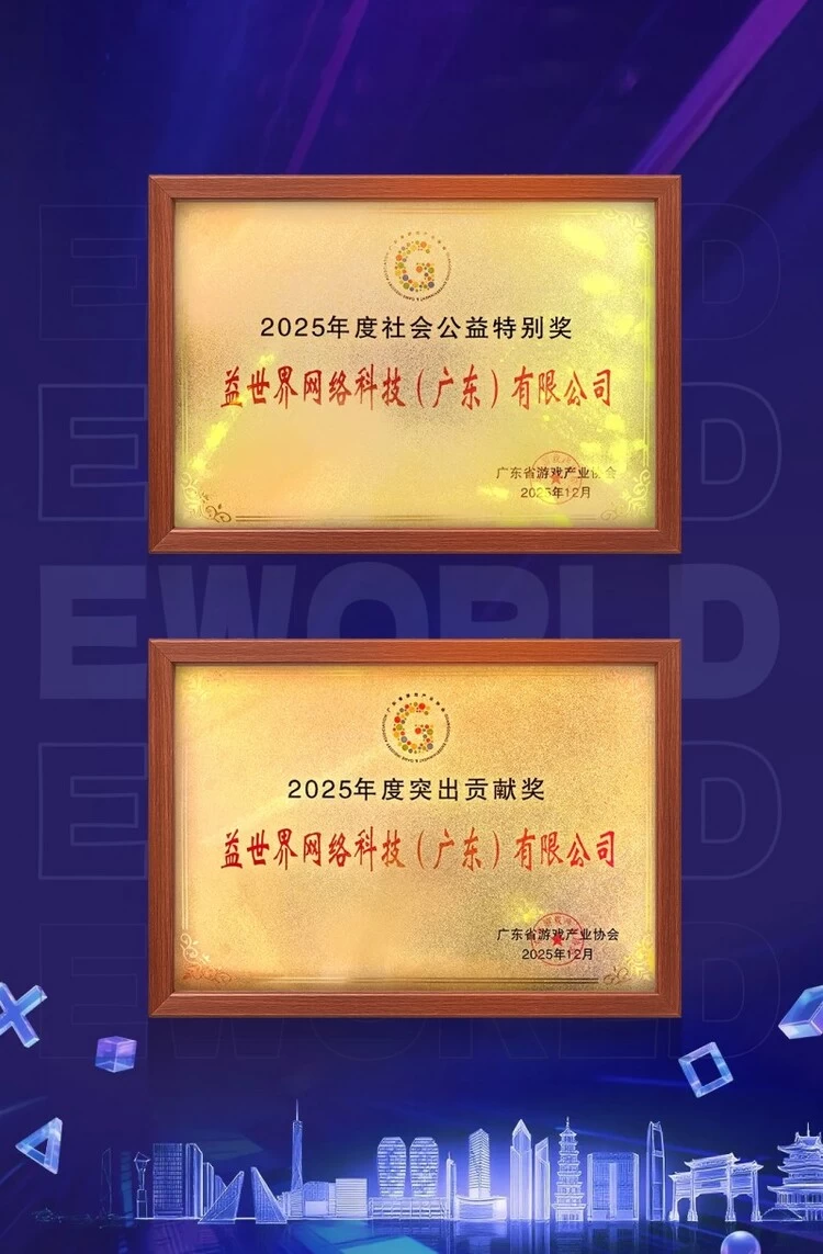 12月23日,由广东省游戏产业协会主办的2025广东游戏产业年会暨“金钻盛典·年度游戏成果发布”在广州举行。益世界凭借持续的创新力、稳健的产品布局与积极的社会贡献,一举揽获五项年度大奖。