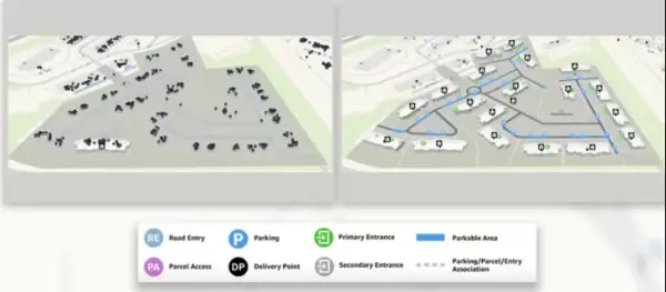 生成式AI配送地图Wellspring(源泉)整合了卫星图像、道路网络、建筑轮廓等数据,给配送员提供了一份智能地图。当一个配送员进入一个小区时,可以从地图上看到“什么地方的停车位最近”、“门牌号对应哪栋建筑”,以及“最佳的投递路线是什么样的”,等等。借助于这一地图,配送员可以很快地找到最佳的路线,显著提高配送效率和准确性。