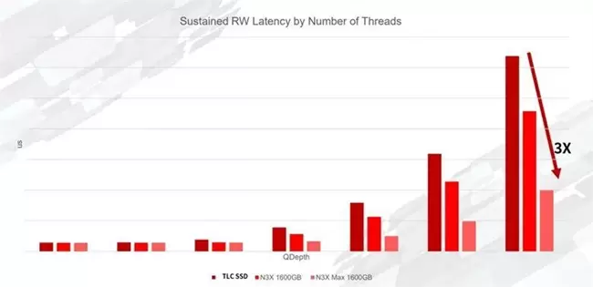 在行业示范层面,洞庭-N3X面向模型训练、模型微调及推理加速等关键阶段,结合XL-Flash与SLC NAND,通过KV Cache等技术实现高并发、低延时访问,与传统TLC SSD相比,延迟降至约1/3,写吞吐量提升至3倍,DWPD提升17–33倍,为AI算力体系提供了更高效的存储支撑。