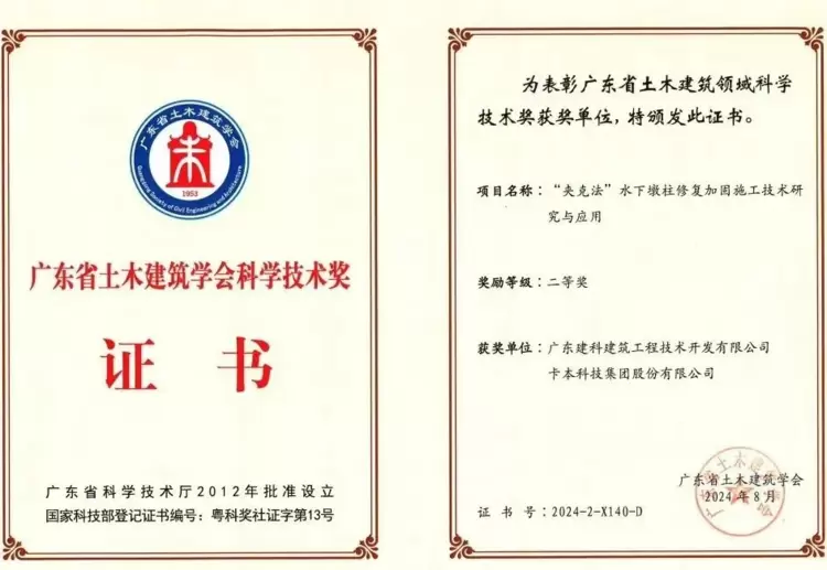 卡本科技集团股份有限公司作为重要参编单位,全程参与了该规程的起草与制定,为桥梁水下养护加固技术的标准化、规范化提供了扎实的实践支撑与专业建议。