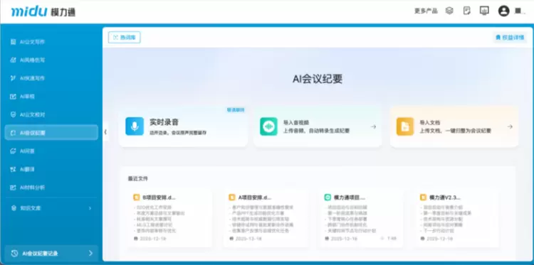 12月25日,模力通AI写作助手正式推出V2.3版,围绕会议信息高效整理与政策资料精准检索两大核心需求,新增“AI会议纪要”功能及知识文库“政策文件”栏目,帮助进一步提升企业、媒体、政务等多领域的办公效率与内容写作质量。