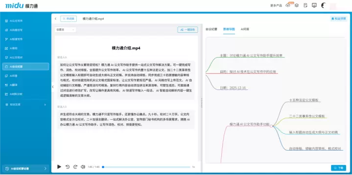 模力通V2.3版焕新升级!AI会议纪要智能生成 政策文件资料精准检索