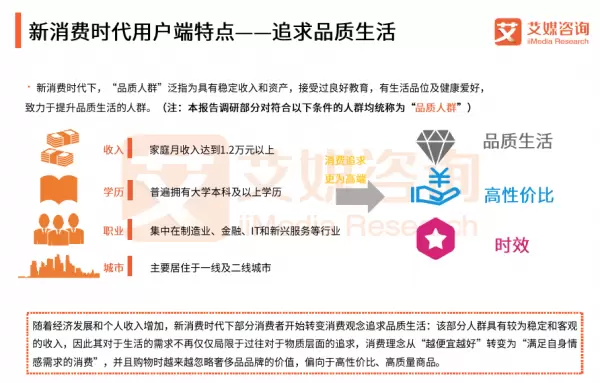 报告指出,中国经济发展和人均可支配收入的上升,推动人们追求更高品质的生活。同时,较大的生活开支促使家庭月收入达到1.2万元以上,居住于一二线城市且接受过良好教育的人群回归理性消费,这些“品质人群”更加关注品质生活、性价比和时效。
