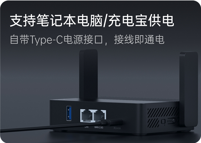 X1 Pro非常小巧,支持Type-C接口供电。这意味着你不仅可以用普通的手机充电头给它供电,出差、旅行途中甚至可以用移动电源(充电宝)直接开机使用!