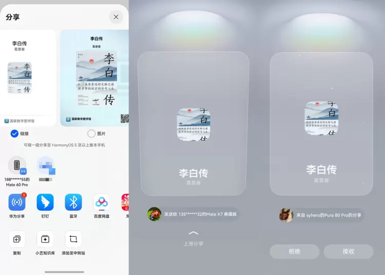 • 华为分享+碰一碰,知识分享更简单:新增华为分享入口,支持将图书资源以链接、图片等形式快速分享;若双方均为鸿蒙设备,只需顶部轻碰后上滑,轻松实现书籍秒传,让知识自由穿梭;