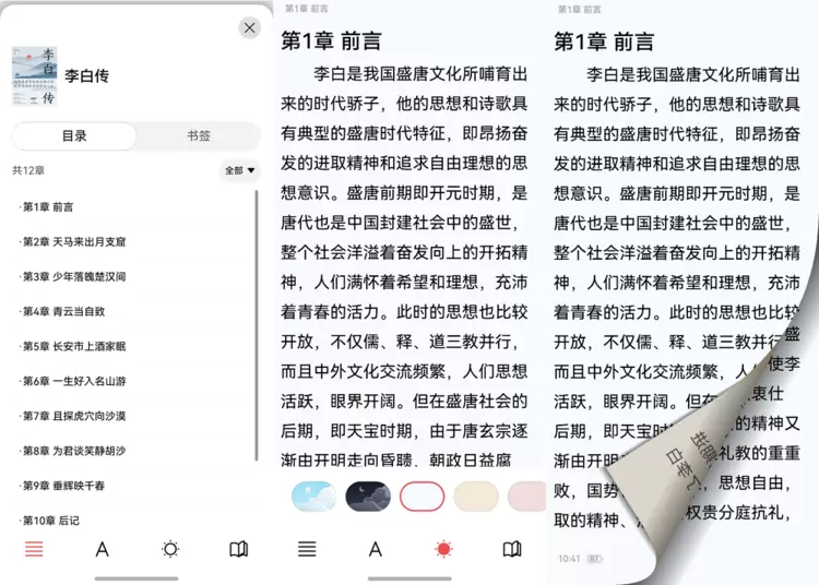 为了给用户提供更优质的阅读体验,国家数字图书馆App借助鸿蒙组件Reader Kit,在界面设计和操作体验上进行了全新升级,目录、阅读背景等排版更简洁、风格更统一,全新视觉设计更具现代美感。在支持多级字号、行距调节、背景切换等个性化功能的基础上,提供仿真翻页效果,全面提升阅读沉浸感。
