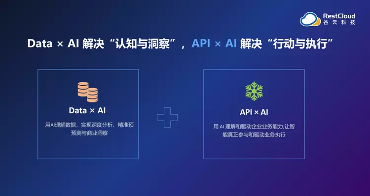 在发布会上,谷云对Data × AI与API × AI做了清晰区分。