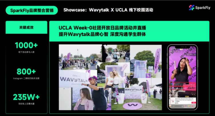 这标志着,针对校园的海外营销已进入“精耕时代”。竞争的关键,不再是预算的堆砌,而在于能否构建一套 “文化洞察-场景融合-圈层引爆” 的系统化能力,将品牌无缝编织进学生的学习、社交与自我表达的全链路之中。作为服务超过80,000家企业的全球化增长伙伴,钛动科技凭借对年轻消费文化的深度洞察与旗下SparkFly等团队的本土化实战基因,正通过打造 “校园增长枢纽” ,助力如Wavytalk等品牌,在最具活力的年轻阵地完成从“品牌曝光”到“身份认同”的深度渗透。