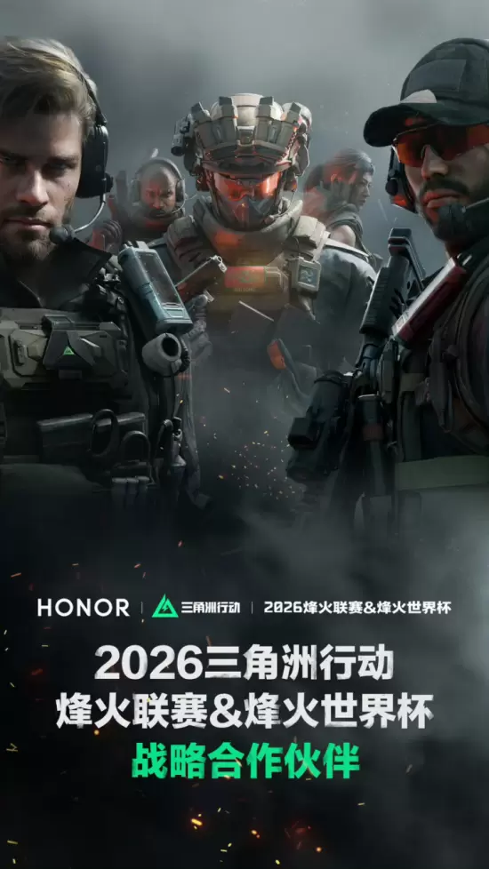 随着《三角洲行动》电竞体系的不断完善,国产品牌开始强势崛起。2025年12月26日,荣耀手机官方宣布成为2026年《三角洲行动》烽火职业联赛及烽火世界杯的战略合作伙伴,荣耀WIN系列手机被指定为赛事专用设备。