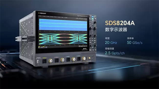 2025年12月22日,鼎阳科技正式发布SDS8204A高带宽数字示波器,在SDS8000A系列原有16 GHz,12 bit高分辨率型号基础上,再一次突破其公司示波器带宽瓶颈,新增20 GHz,8 bit高带宽型号,进一步完善了SDS8000A系列的产品布局。SDS8204A模拟带宽可达20 GHz,每通道实时采样率高达50 GSa/s,存储深度最大2.5 Gpts/通道,最高500,000 wfm/s波形捕获率,270 μVrms超低本底噪声。具备丰富的一致性分析功能如MIPI、DDR、PCIe、以太网等,搭配眼图和抖动分析工具及丰富的协议解码,可为半导体研发、高速通信系统验证、车载电子测试等提供全方位的解决方案。