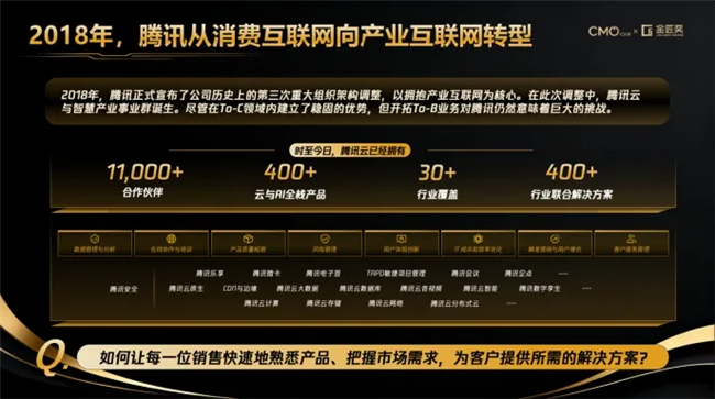 2018年,腾讯启动第三次重大组织架构调整,正式向产业互联网转型,腾讯云与智慧产业事业群应运而生。这一转型让腾讯从熟悉的C端生态,迈入了一个更为复杂的B端战场。