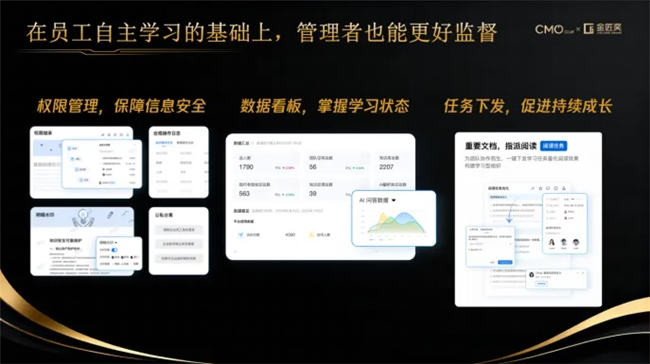 在管理层面,乐享提供精细化权限管理、数据看板监控与学习任务下发功能。管理者可一键下发新品知识学习任务,实时查看员工阅读进度,通过互动测试确保知识真正落地,既保障了信息安全,又推动了组织学习常态化。