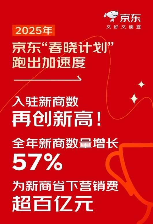 - 京东发布2025年春晓计划成绩单:数百万商家入驻,为新商节省数百亿