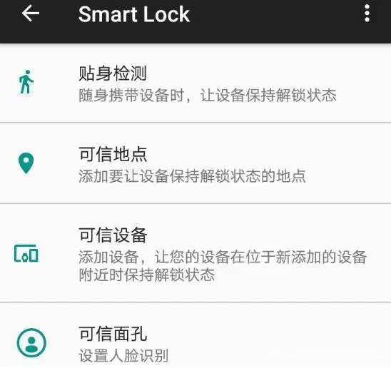 Motorola p30 play所搭载的ZUI也带来了更加令人感到安心的“安全防护”设置。在设置界面中进入手机解锁,除了指纹添加以及常见的图案解锁设置外,点击居中位置的“智能解锁”将会进入一个全新的界面,主要是针对设备使用安全的一些信任设置,如随身携带时可让设备保持解锁状态的贴身检测;在常用的生活、办公地点可使设备保持解锁状态的可信地点;在常用的电脑旁时,设备也可随时保持解锁状态的可信设备。